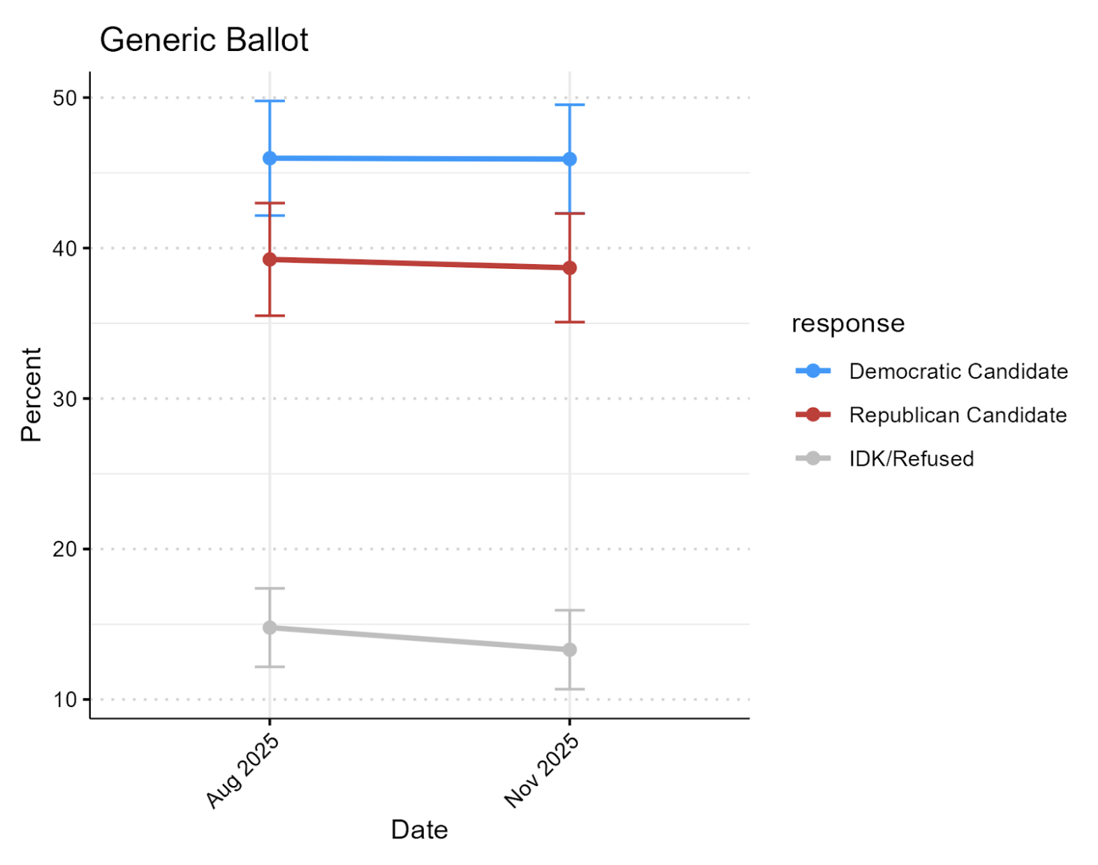 Our last Survey 160 tracking poll showed Democrats with a 7-point lead in the generic ballot for the US House – and that lead remains this month.