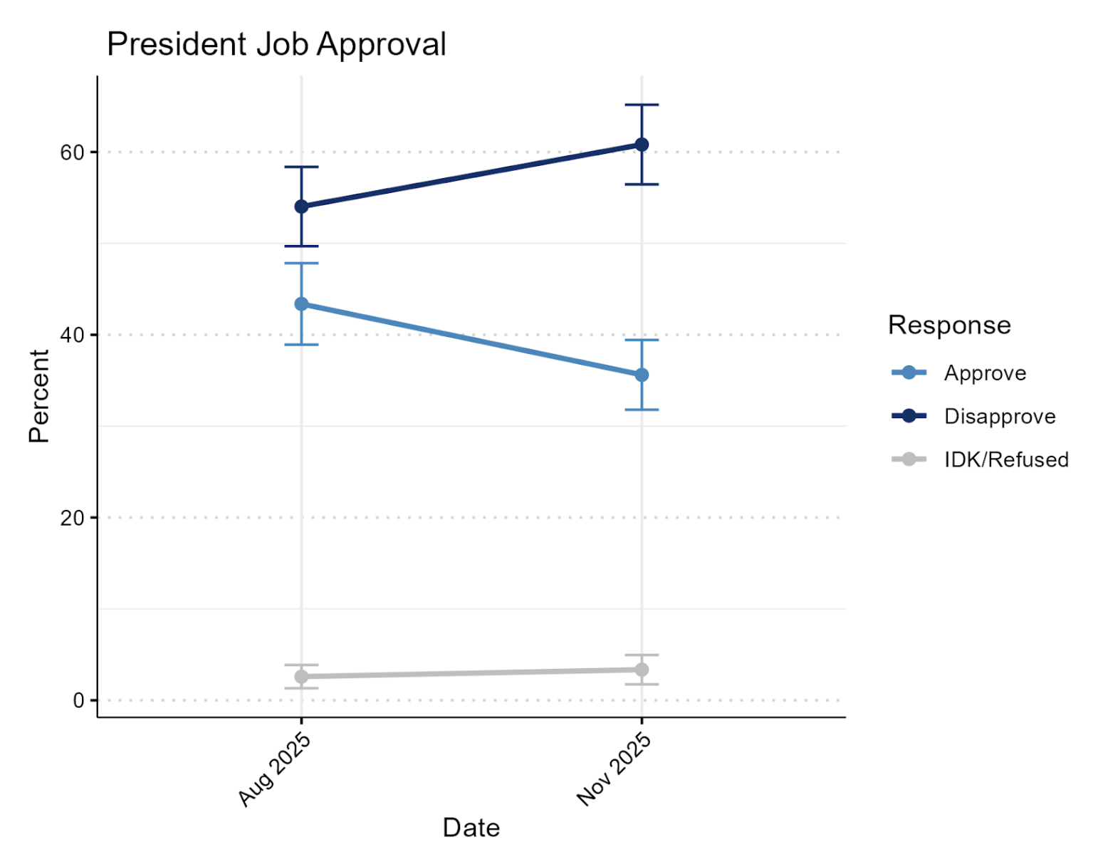 Today we are releasing the results from our ongoing Survey 160 tracking poll conducted November 6-10, 2025. This installment zeroes in on a hot question: which political party do voters think is more corrupt? And it includes results from an experiment testing whether telling voters of a recent corruption allegation involving the Trump administration changes that view. Alongside the experiment, we continue to track public opinion on key political issues and trends, including presidential approval and the generic House ballot.